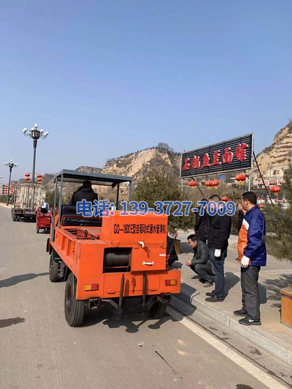 20190312植樹節(jié),山西省呂梁市興縣**工程管理處劉老板與河南都市機械設備有限公司喬師傅0372-8158609共同研發(fā)出來新型GQ-1800E型自驅動通水管道清理機(GQ-1800E型自驅動機械式疏通機)軸粗力大,高壓射水,拉泥清淤多用途疏通機,歡迎大家圍觀指導合作!